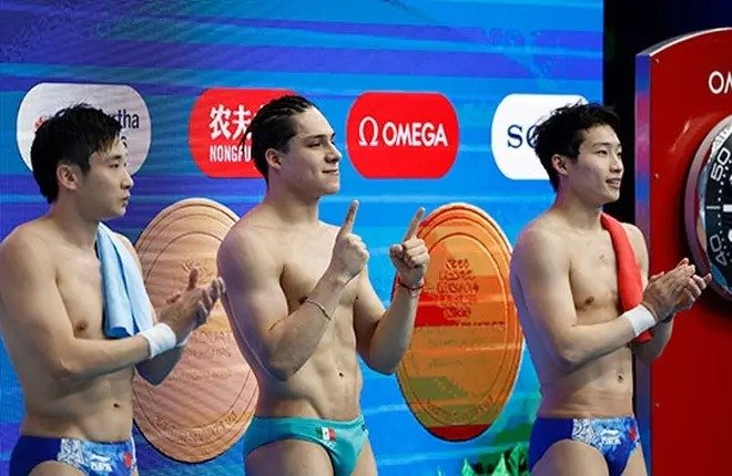Olvera sumó 529.55 puntos contra 522.70 de Yuan y 515.55 de Zongyuan para darle a México su tercera medalla de oro en la historia en un Mundial de Natación.