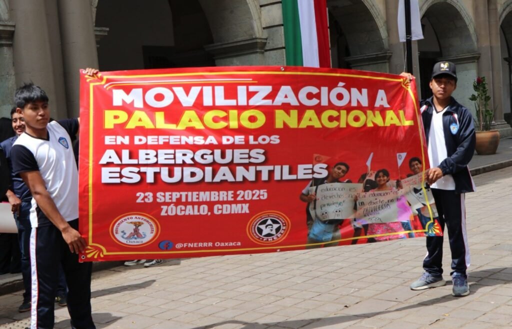 Ciudad de México.- Cientos de estudiantes de Oaxaca, organizados en la Federación Nacional de Estudiantes Revolucionarios “Rafael Ramírez” (FNERRR), protestarán mañana, martes 23 de septiembre, en “La Mañanera” de la presidenta Claudia Sheinbaum Pardo para solicitarle una entrevista e informarle que en Oaxaca se reprime a los estudiantes, se les despoja de sus albergues estudiantiles y el gobierno del Estado que encabeza el morenista Salomón Jara Cruz, no ha detenido a los autores intelectuales y materiales.