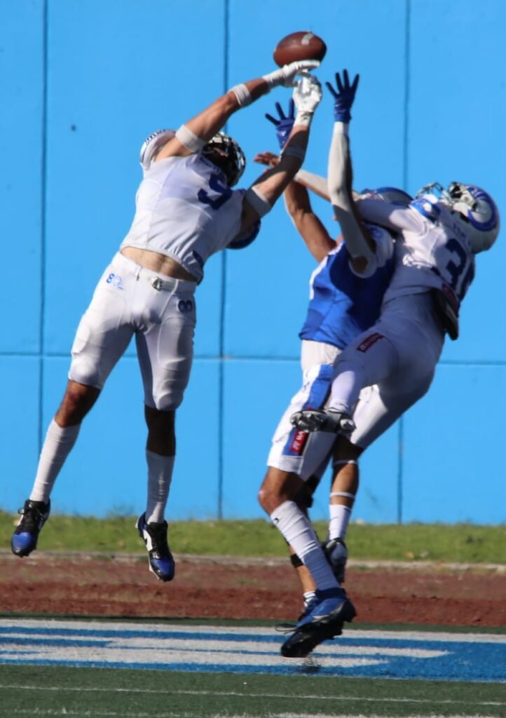 Alejandro la “Bala” Cruz aportó un acarreo de anotación de 34 yardas y la defensiva del ITESM sumó cuatro intercepciones incluyendo una de Juan Sebastián Meza, quien la retornó 28 yardas hasta las diagonales.