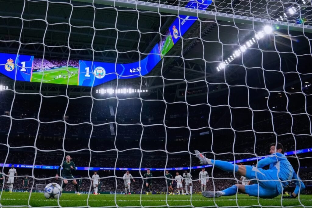 Sin Kylian Mbappé por una lesión muscular, el Madrid se adelantó en su estadio Santiago Bernabéu gracias al gol de Rodrygo Goes a los 28 minutos, pero el City le dio la vuelta con los tantos de Nico O’Reilly a los 35 y Erling Haaland de penal a los 43.