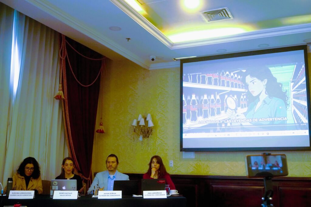 En el panel participaron Ana Larrañaga, de El Poder del Consumidor; Javier Zúñiga, abogado de la misma organización, y Doré Castillo, directora general de Salud Crítica, quienes destacaron la importancia de actualizar la normatividad para garantizar el derecho de las personas consumidoras a contar con información clara, veraz y accesible sobre los productos que adquieren.