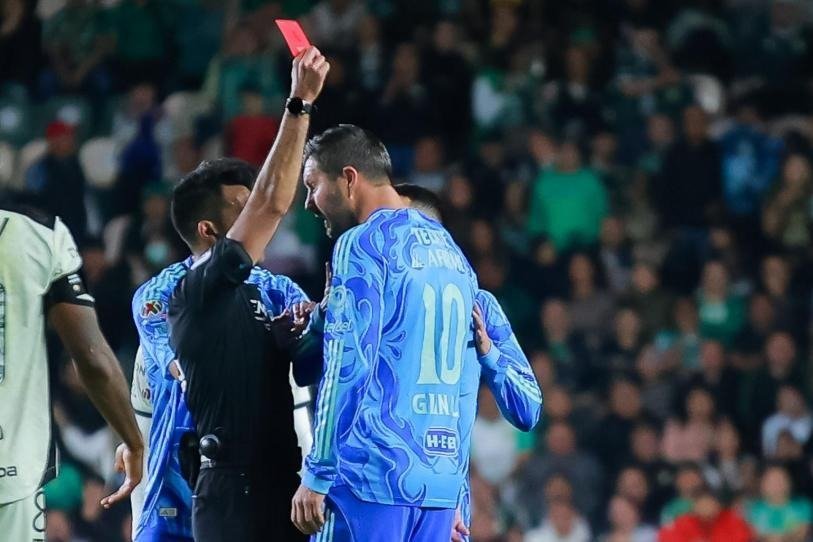 Tigres terminó con 10 elementos por la expulsión del francés André Pierre Gignac en el séptimo minuto del descuento. Fue la primera tarjeta roja para el goleador de los Tigres en 363 juegos disputados en la Liga MX.