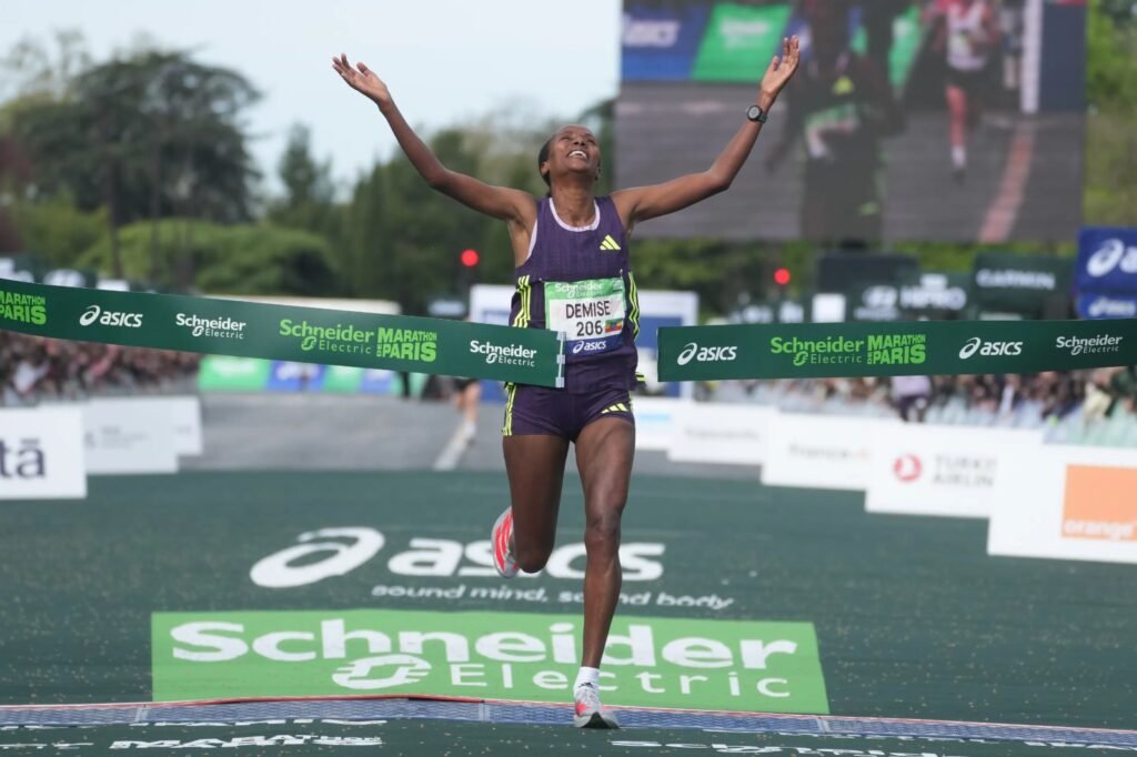 Demise recorrió los 42,195 kilómetros (26,2 millas) por la capital francesa con un mejor registro personal de 2 horas, 18 minutos y 34 segundos, recortando más de un minuto al anterior mejor tiempo femenino en París.
